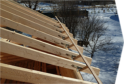 Стропильная система крыши (её основание) крепится к срубу на «скользящие опоры», чтобы крыша во время усадки сруба могла быть подвижной.